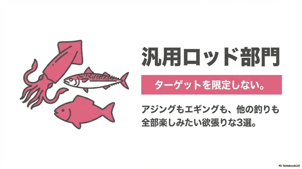 「エギングのついでにアジング」ではなく、アジングもエギングも同じくらい楽しみたい人に向いています。コスパ・万能性・扱いやすさを軸に3本を厳選しました。