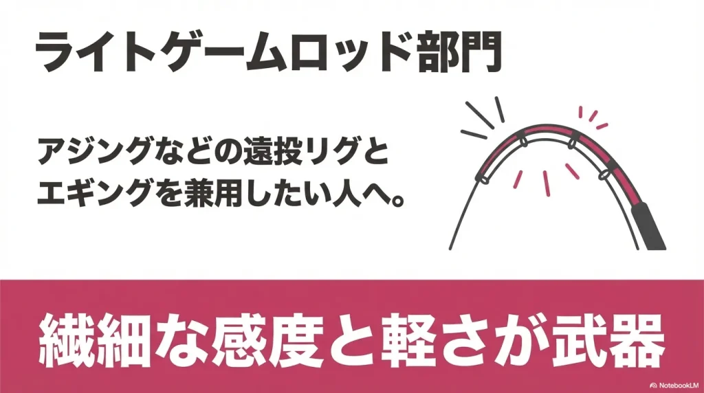 ライトゲームがメインで、遠投リグとエギングを兼用したい人におすすめのカテゴリ。