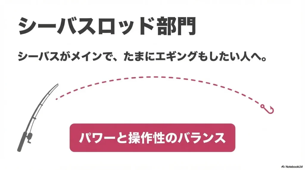 ロッドは「汎用ロッド」「シーバスロッド」「ライトゲームロッド」の3カテゴリに分けてピックアップ。