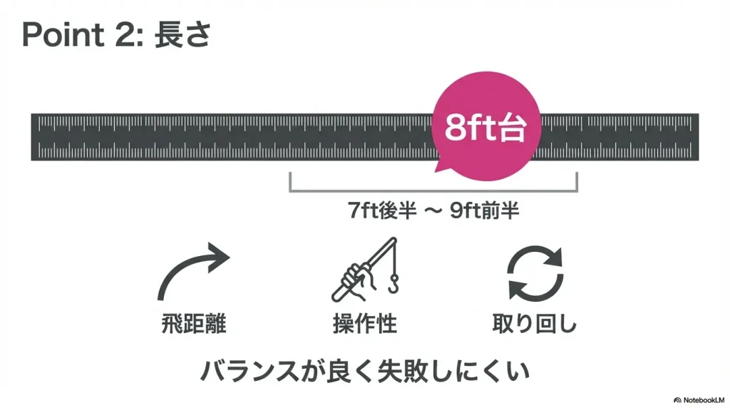 さらに、シーバスやチニング、遠投リグのライトゲームなど、他ジャンルにも流用しやすく、兼用ロッドとして失敗しにくい長さです。
