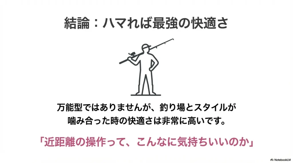 ショートロッドは万能型ではありませんが、釣り場やスタイルが噛み合ったときの満足度は非常に高いロッド。
